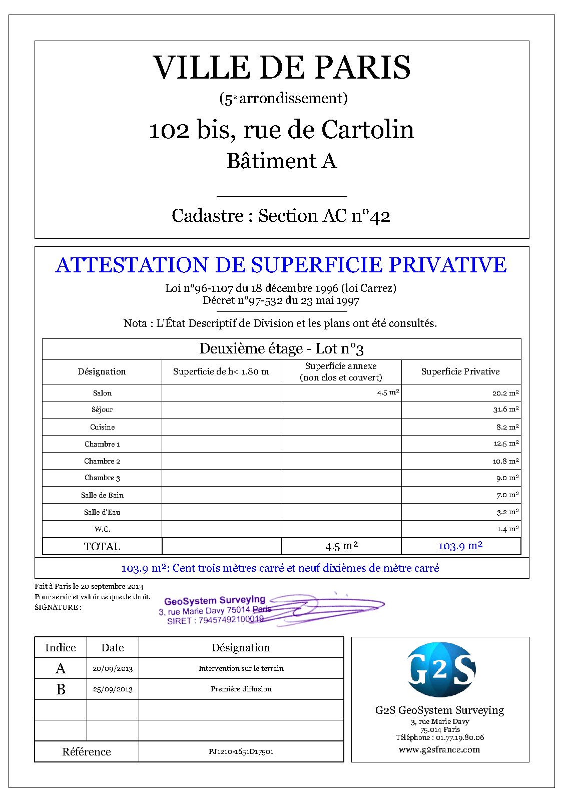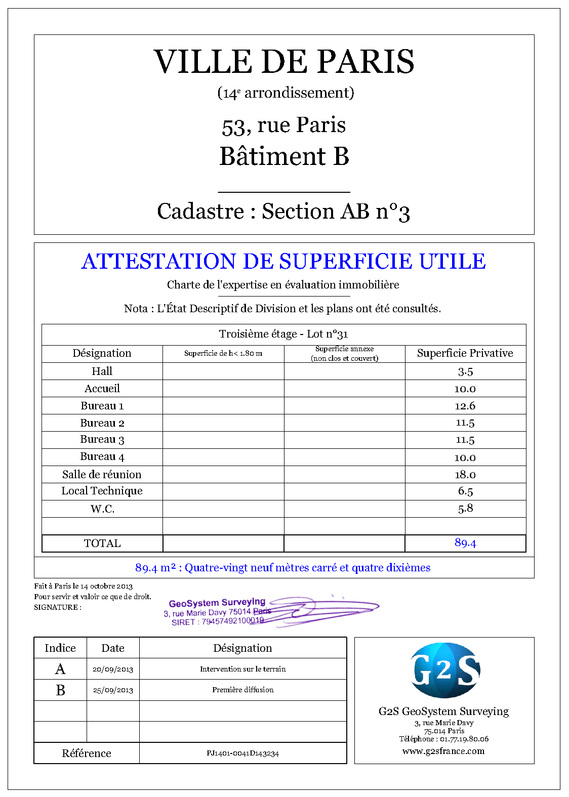 PARTICULIERSRéalisez vos projets immobiliers en respectant la législation et à un coût attractif.- Donation-partage de biens immobiliers - Modificatif de copropriété, division/réunion de lots - Attestation de superficie (carrez, habitable, arpentée) - Tous types de plans (plan de propriété, topographique, intérieurs...) - Certificat d'urbanisme, permis de construire etc. |